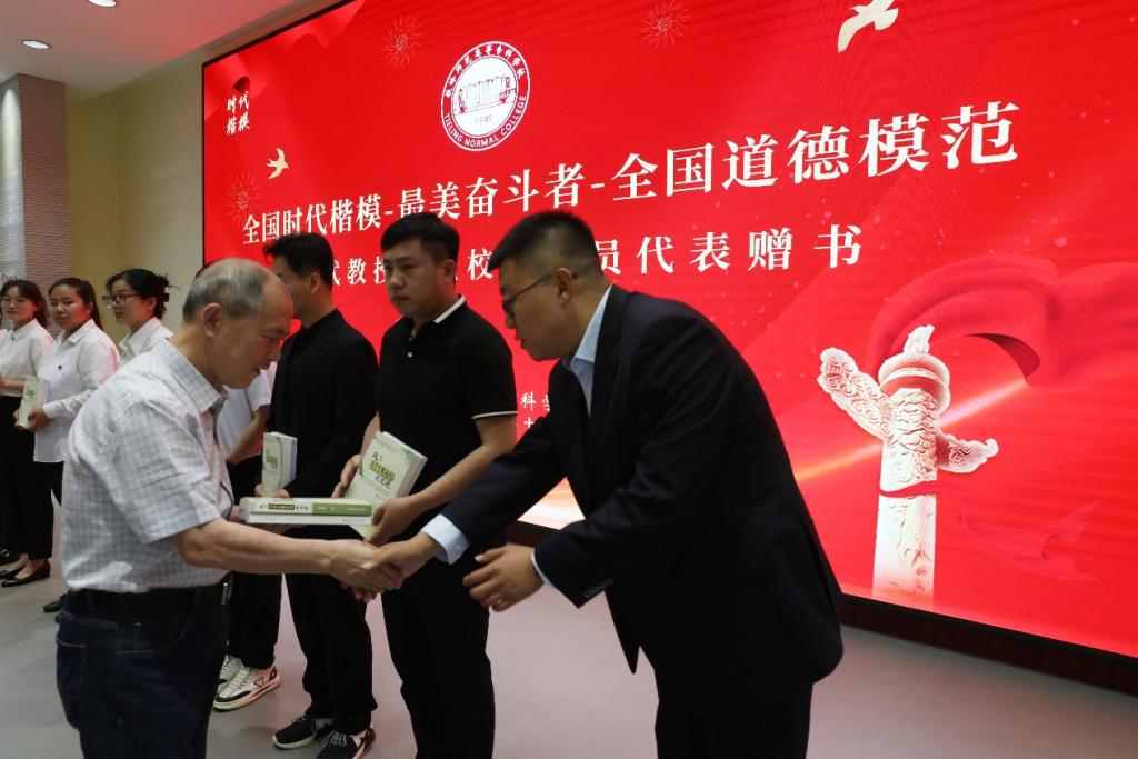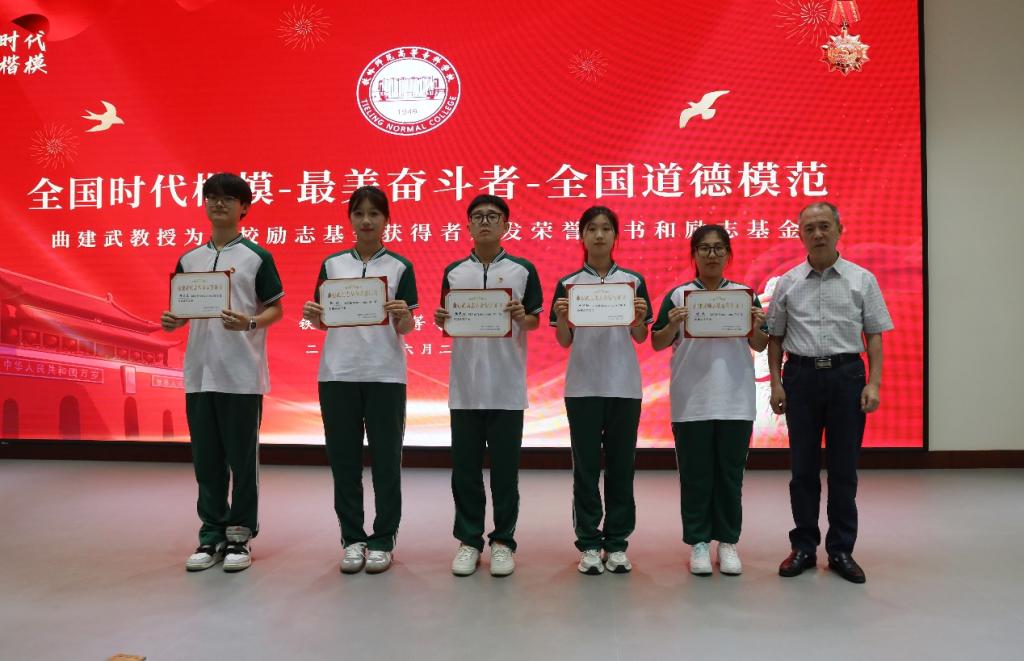 报告会前,曲建武教授为我校5名同学颁发了他自己设立的励志基金,并为我校辅导员赠送了他的两部优秀作品《我与大学生朋友们的交流》和《仍然在路上》。