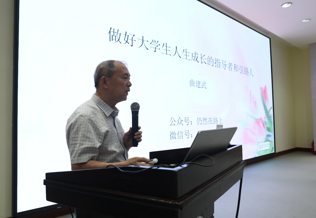 2024年6月24日,全国“时代楷模”、大连海事大学马克思主义学院博士生导师、二级教授曲建武应邀来我校,为广大师生带来一场以“做好大学生人生成长的指导者和引路人”为主题的专题报告。