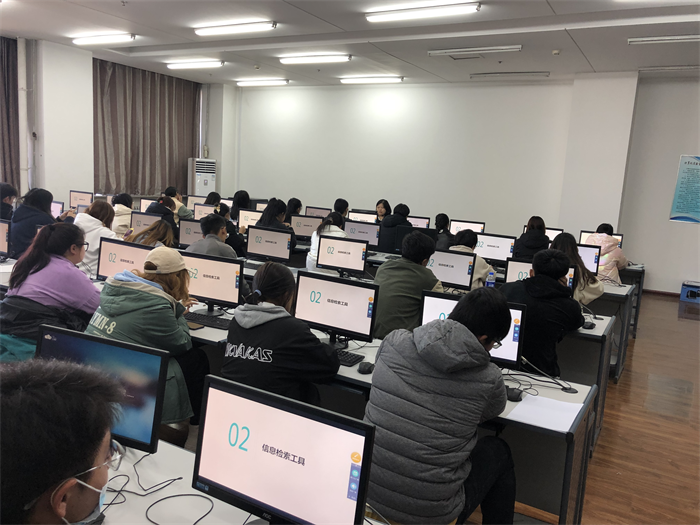 本次培训讲座在图书馆510电教室进行,主讲人是图书馆夏烨副馆长。夏馆长围绕信息检索的含义、工具以及应用等三个方面展开讲解,指导同学们如何将信息检索技术融入到比赛当中,并现场传授给同学们能在大赛中脱颖而出的得高分小技巧。培训现场气氛热烈、互动频繁,会后夏馆长组建大赛交流群以便随时为学生解惑,陪伴同学们度过紧张的备赛阶段,助力同学们取得优异的成绩。
